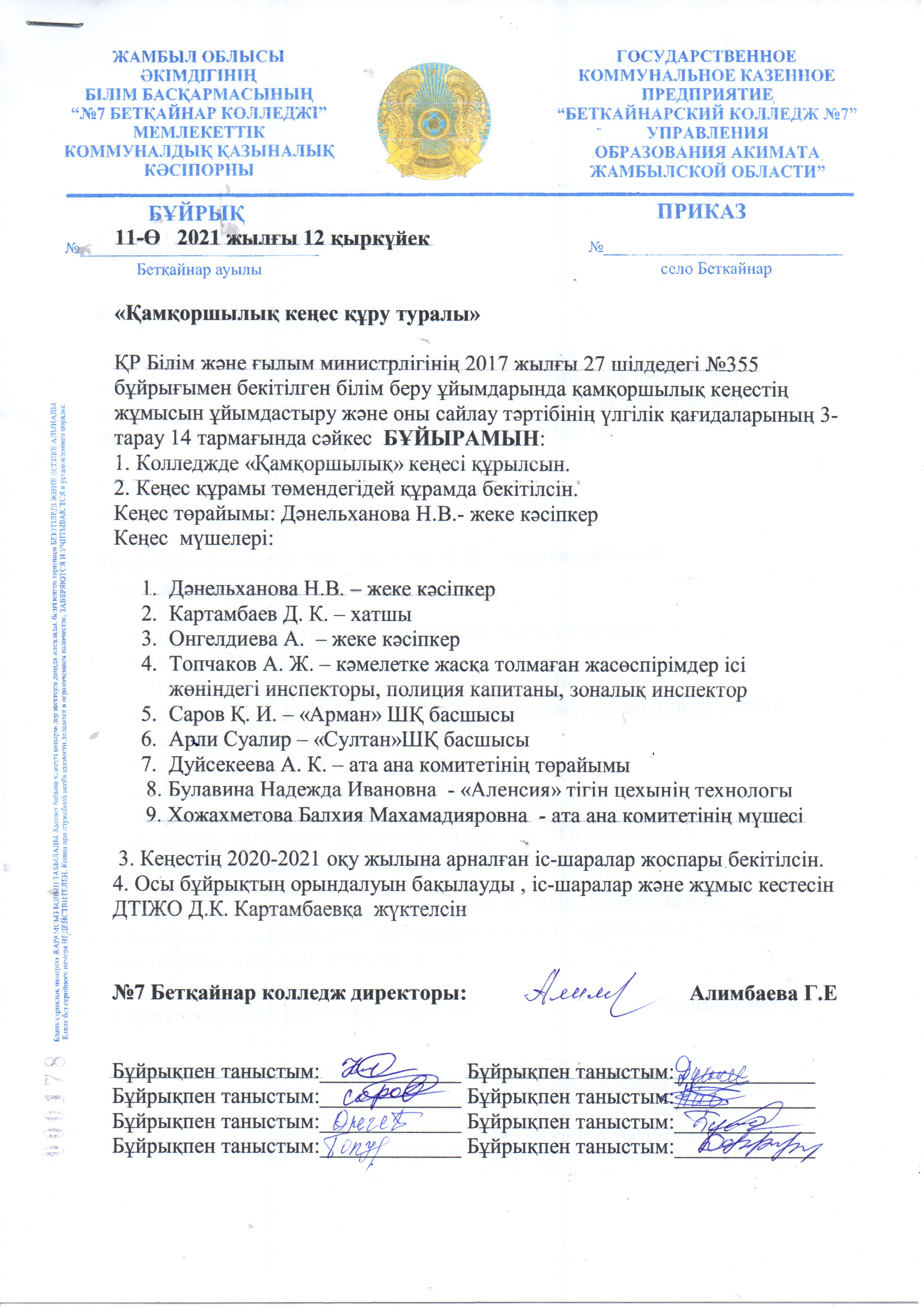 "Жамбыл облысы әкімдігінің білім басқармасының №7 Бетқайнар колледжі"