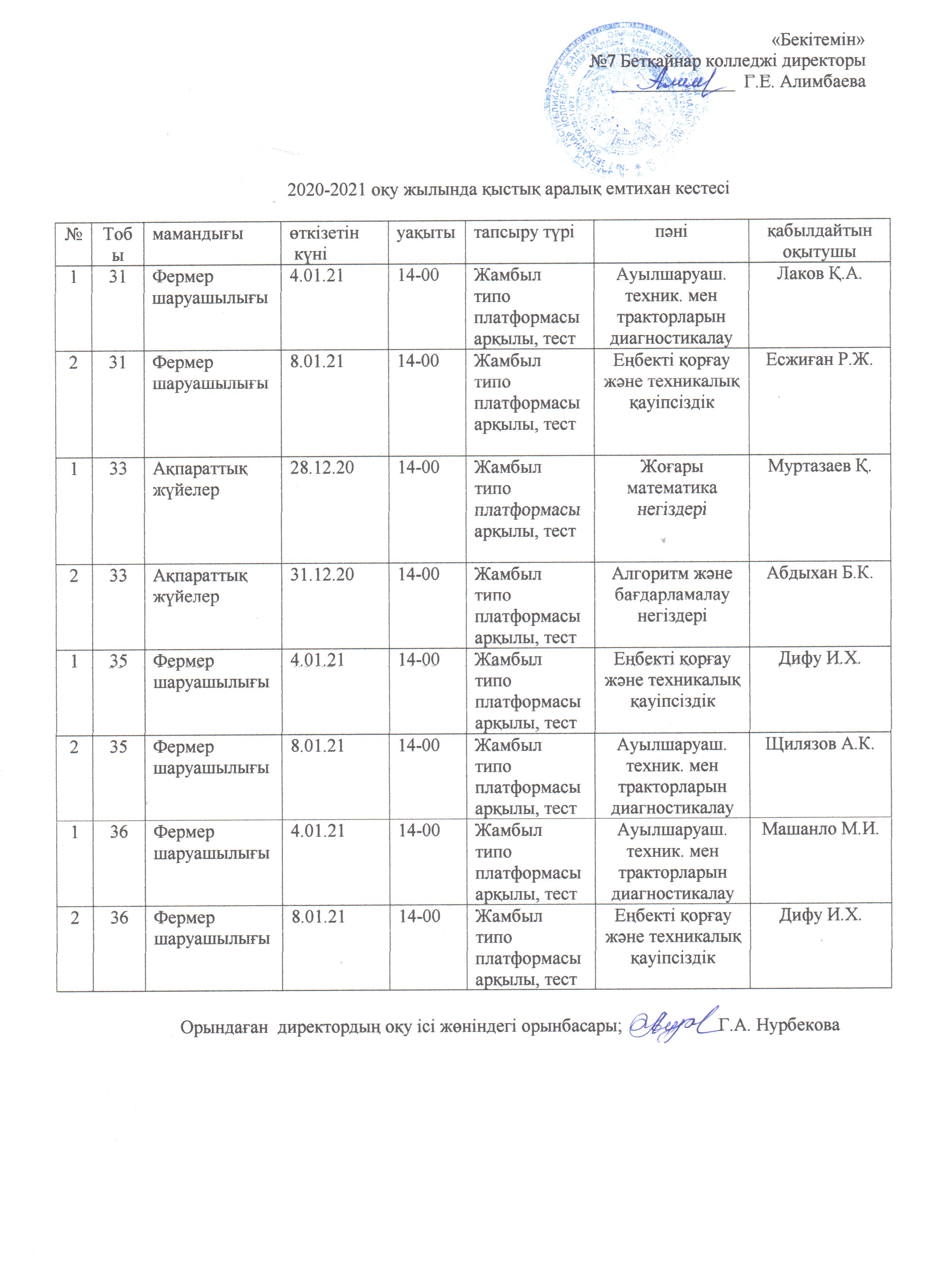 1 курс білім алушыларының 2023 - 2024 оку жылындағы аралық аттестаттау кестесі |