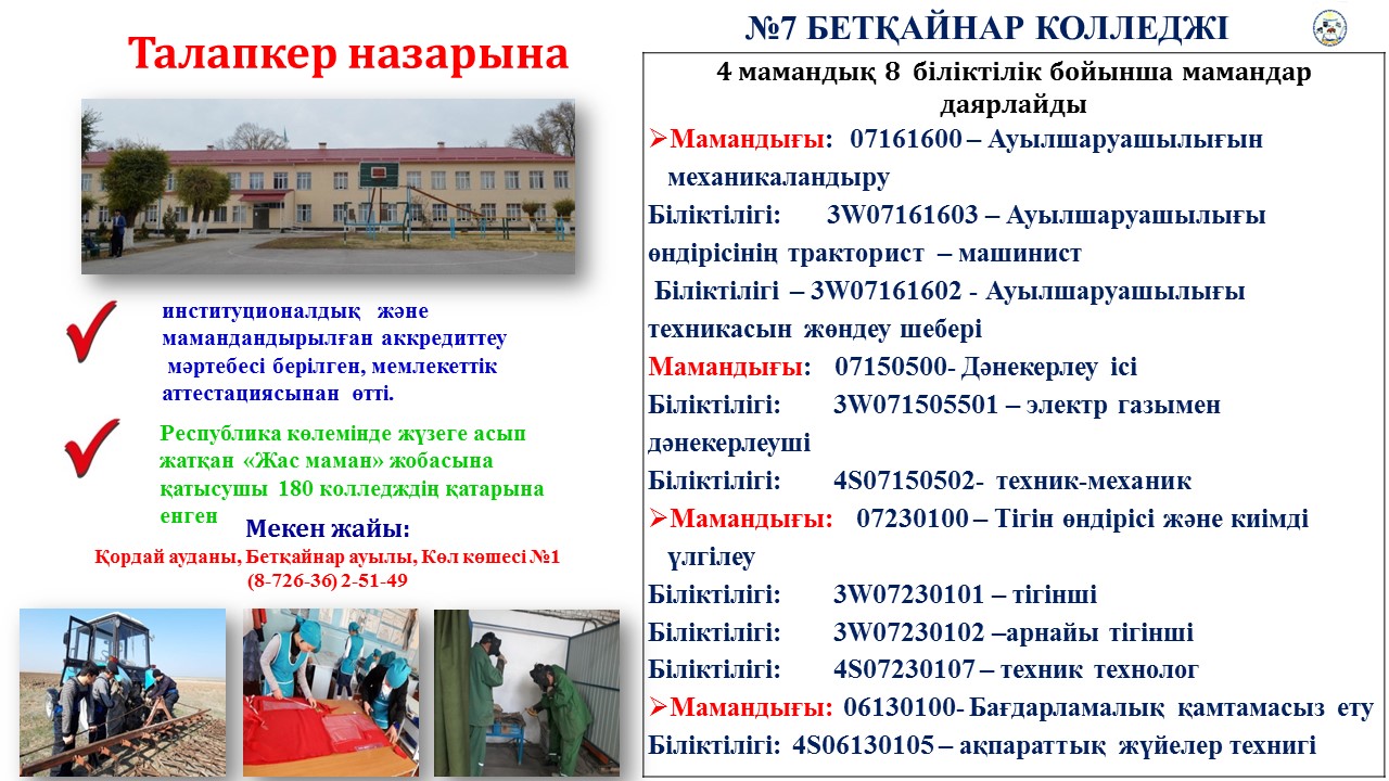 «№7 Бетқайнар колледжі – білім мен кәсібиліктің орталығы»
