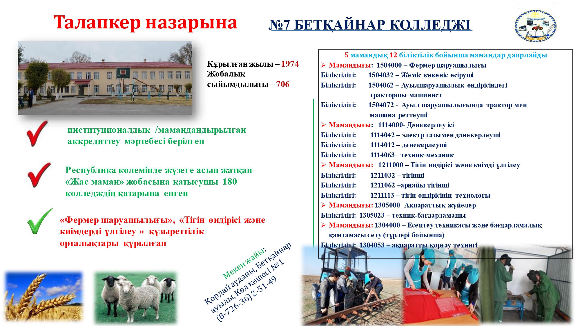 "Жамбыл облысы әкімдігінің білім басқармасының №7 Бетқайнар колледжі"