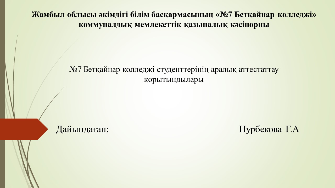 №7 Бетқайнар колледжі студенттерінің аралық аттестаттау қорытындылары