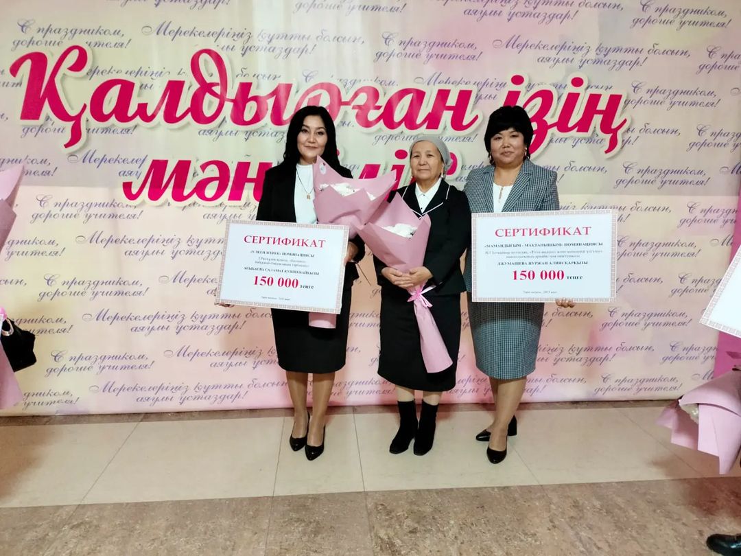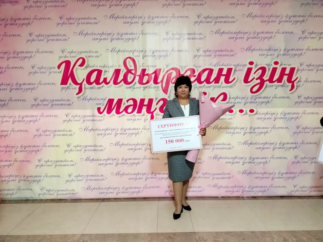 Жамбыл облысы әкімдігі білім басқармасының ұйымдастыруымен мұғалімдер күніне орай «Қалдырған ізің мәңгілік...» атты мерекелік шара өткізілді. Мерекелік шара барысында облыс әкімі Қарашөкеев Ербол Шырақпайұлы адамзат көңілінің көкжиегін ағатушылық қызметімен нұрландырып жүрген ардақты ұстаздарды мерекемен құттықтап, олардың ізгі еңбектері және қазақстандықтардың жас ұрпағын тәрбиелеуге қосқан үлесі үшін ризашылығын білдірді. Сондай-ақ, жылдағы дәстүр бойынша үздік ұстаздар мен белсенді мамандар түрлі марапаттарға және сыйақыларға ие болды. Соның бірі N7 Бетқайнар колледжінің "Тігін өндірісі және киімдерді үлгілеу" мамандығының арнайы пән оқытушысы Джумашева Нуржан Алиясқарқызы "МАМАНДЫҒЫМ-МАҚТАНЫШЫМ" номинациясы және 150 мың тенге сертификатымен марапатталды.